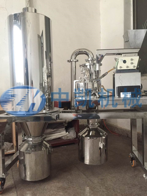 一、原理及特點(diǎn): 當(dāng)壓縮氣體進(jìn)入粉碎室,在粉碎室外圍有4個粉碎噴嘴,噴射氣流,使物料受到氣流高速沖擊,以及物料相互對撞而粉碎,分級輪把細(xì)的顆粒分離出來,粗顆粒循環(huán)返回粉碎室繼續(xù)粉碎,從分級輪出料口收集到的將是分布均勻的超微細(xì)粉。 1、適用于干式超微工藝。氣流沖擊速度可達(dá)2.5馬赫以上, 一般情況下很容易獲得1~10微米(UM)的粒子, 根據(jù)物料性質(zhì),還能獲得小于1微米(UM)粒子. 2、由于粉碎機(jī)內(nèi)部有分級輪結(jié)構(gòu), 制品中粗粒子不斷循環(huán)粉碎, 因而能獲得粒子均勻、粒徑分布范圍小的制品. 3、該設(shè)備具有粉碎時間短、結(jié)構(gòu)簡單、操作檢修方便、占地面積小、低噪音(72分貝)和無振動等優(yōu)點(diǎn). 4、粉碎時效高, 能進(jìn)行連續(xù)粉碎, 能保持粉碎制品純度. 二、適用范圍: 礦產(chǎn): 高嶺土、云母、石墨、重晶石、石英、碳酸鈣、鋯英沙、滑石等. 化工: 三硫化鉬、三氧化二銻、鈦白粉、氧化鋁、染料、顏料、白炭黑等. 電子: 吠嗶克(TGIC)、鈦酸鋇、三氧化二鉻等; 醫(yī)藥: 硝酸鉍、可的松、青霉素、花粉、珍珠粉、尼莫地平等; 農(nóng)藥: 多菌靈、甲基托布津、除草粉體、殺蟲粉體、可濕性粉劑等. 三、規(guī)格與參數(shù)(供參考) 規(guī)格 參數(shù) | 100 | 300 | 400 | 600 | 1000 | 工作介質(zhì) | 壓縮空氣 | 壓縮空氣 | 壓縮空氣 | 壓縮空氣 | 壓縮空氣 | 配備氣量M3/min | 3 | 6 | 10 | 20 | 40 | 工作壓力 Mpa | 0.7~1 | 0.7~1 | 0.7~1 | 0.7~1 | 0.7~1 | 進(jìn)料粒徑 (目) | ≥60 | ≥60 | ≥60 | ≥60 | ≥60 | 粉碎細(xì)度 um | 1~200 | 1~200 | 1~200 | 1~200 | 1~200 | 處理量 Kg/h | 3~30 | 15~100 | 20~150 | 100~450 | 200~1000 | 總功率Kw | 22-25 | 45~60 | 75~90 | 160~180 | 320-350 | 農(nóng)藥(400目)處理量Kg/h | 10~30 | 100~200 | 250~450 | 400~800 | 800~1500 |